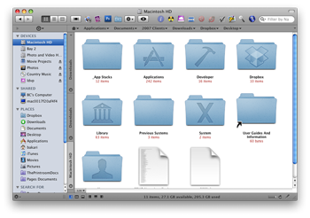Steve Gehrman who seems to be the sole developer of Path Finder, actually designed the application so that it has the look and feel of Apple's Finder. Everything you've learned how to use in Apple's Finder is there in Path Finder. Quicklook preview, sidebar bookmarks, Spotlight searching, and three different browser views. It doesn't appear, however, that you can create smart folders with Path Finder, even though previously created smart folders will show up.