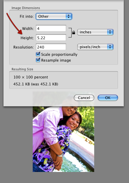 3. Resize Photo: Often times when you first try to print photos, the dimensions of the image don't fill up the paper, even if you're printing with a border. So the best way to make sure the image will fit is to resize the photo for the dimensions of the paper you're using. Before resizing a photo it's probably a good idea to make a copy of it first, just in case you want to keep the original size. You might also consider cropping out waisted background space in the photo so that you can see more of the main subject in the photo. If you have you 3+ magapixel size photo, you can typically do some cropping and not loose much megapixel quality in the photo.