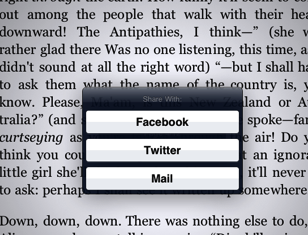 Finally, you can also share what you’re reading, on your Twitter and Facebook account—a feature missing in all other mobile e-readers.