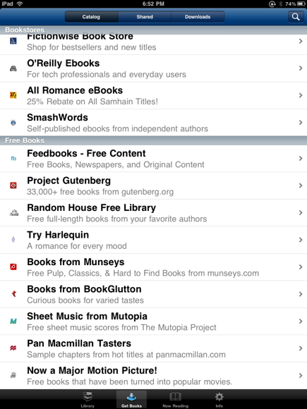 Stanza also offers commercial catalogs to publishers like O’Reilly ebooks, which has an extensive catalogue of computer related ebooks. Note, however, you don’t establish a central account for purchasing books through Stanza. Each of its catalogs links to a different book seller and account.