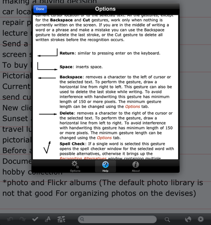 So if I deplore handwriting, what is WritePad (iTunes Store link) a handwriting recognition program doing on my iPad? Well, though the iPad's built-in keyboard isn't the worst feature of the device, it can sometimes be a pain to use. However, the iPad feels almost like those yellow writing pads I wrote on back in the ‘80s and ‘90s. So sometimes I'm lounging in my reading chair or in bed and I just want to jot down some notes or brainstorm a list of ideas without typing. This is where WritePad comes in.